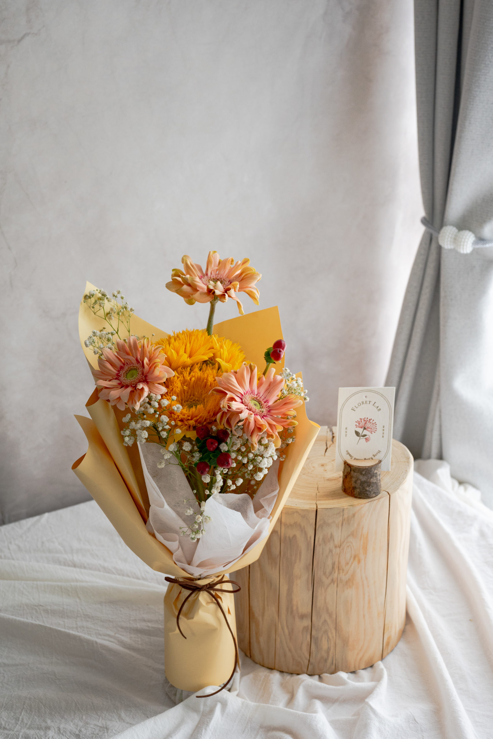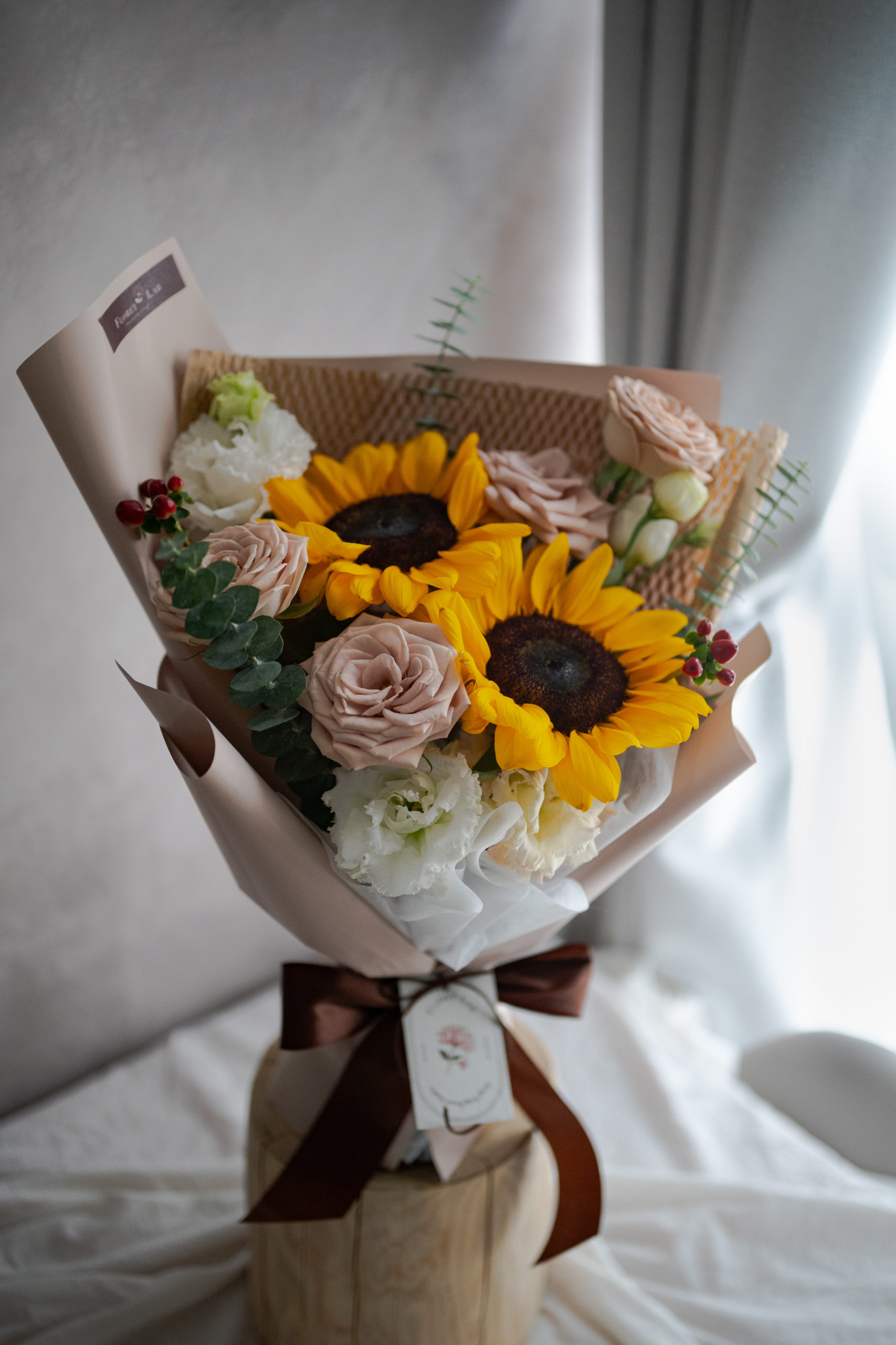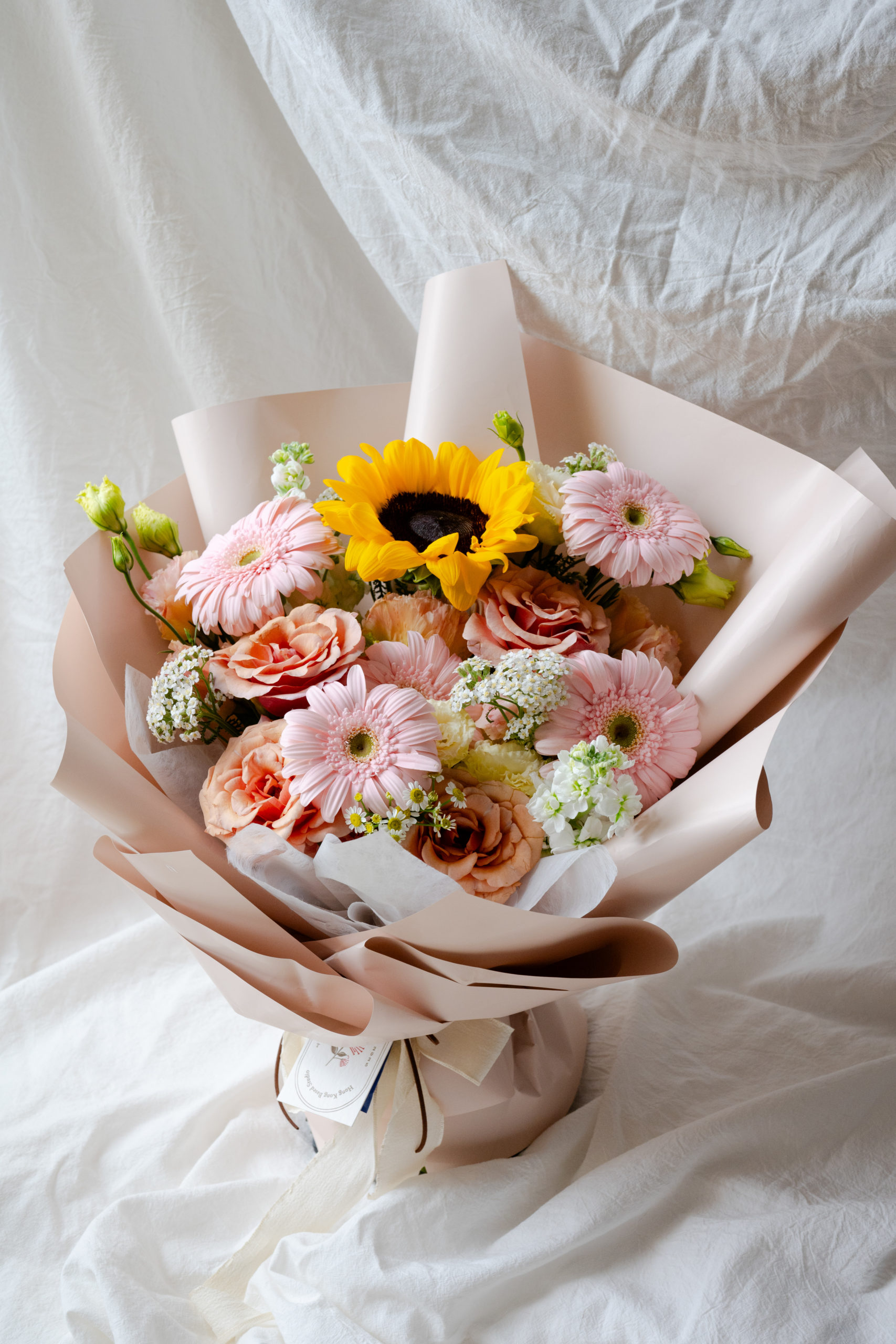 玫瑰奶茶太陽花花束